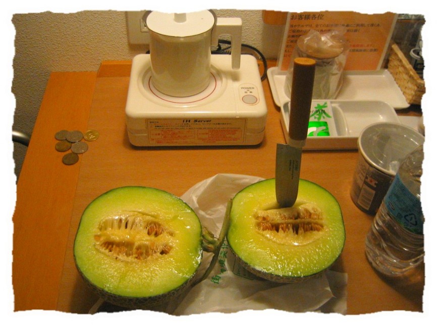 The tour guide bought me a melon and give it to me as souvenir! What a lovely gesture! I was so touched! As I was going to travel out to Seoul for the next 3 days, I was wondering if the melon would be spoilt by the time I return to Fukuoka. It did not. I thought it was awkward to borrow a knife from the Hotel Floral Inn hotel staff so I went to 100yen shop on the last day in Fukuoka and bought a fruit knife! See how I managed to eat a melon alone over 1 dinner and 1 breakfast?!? :)