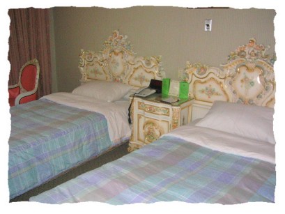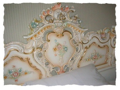 Our bedroom...note the ornate design of the bed board. In fact. the photographs do not do justice to what I see --> Everything in the bedroom seem to be overly done, quite coarse, loud and old fashioned. The deign seem to be that of 20, 30 years ago...