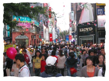 Our Japanese speaking Korean guide, Ms. Zhang (£ΔP) picked Kyoko and I, plus another 4 Japanese tourists up from Incheon airport and brought us to our hotel. It was an hour ride by mini van. Ms. Zhang introduced us to Korea and some interesting places to visit in Seoul. I don't know what trouble I always get myself into but when I went to Busan last year, I also signed up with some travel Japanese agency from Japan and hence, even though I am in Korea, what I hear is nothing but Japanese. I understood what the Japanese speaking Korean guide has introduced to us about Korea so I am so glad that my comprehension ability is not degenerating albeit my not so fluent Japanese speaking ability. When we reached our hotel in Seoul, Kyoko and I took a brief rest before we embarked on our window shopping trip to Myong dong!