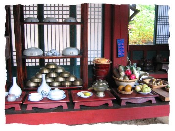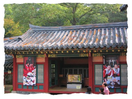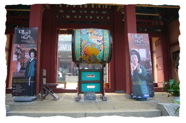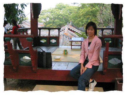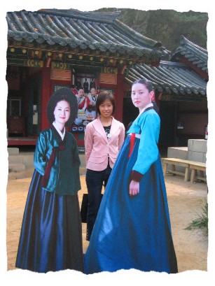 Ms. Kim, our tour guide for the day, brought us all (participants of the day trip) around the theme park once, introduced to us the various interesting aspects of the theme park before we dispersedto plant ourselves in front of the royal kitchen or pavilion to take photographs! We spent around 1.5 hours. Somehow, the palace shown on TV seems to be much bigger, spacious than what I actually saw at the theme park. I must highlight that the sets were preserved exactly the way it was during filming! Some sort of camera trick and lighting trick made the palace appeared more spacious? Mr. Kim explained that since the palace ground was not exactly vast, for instance, Lee Young Ae had to run across the courtyard twice to potray the image of a spacious place! Oh, that's how it works. Interesting!
